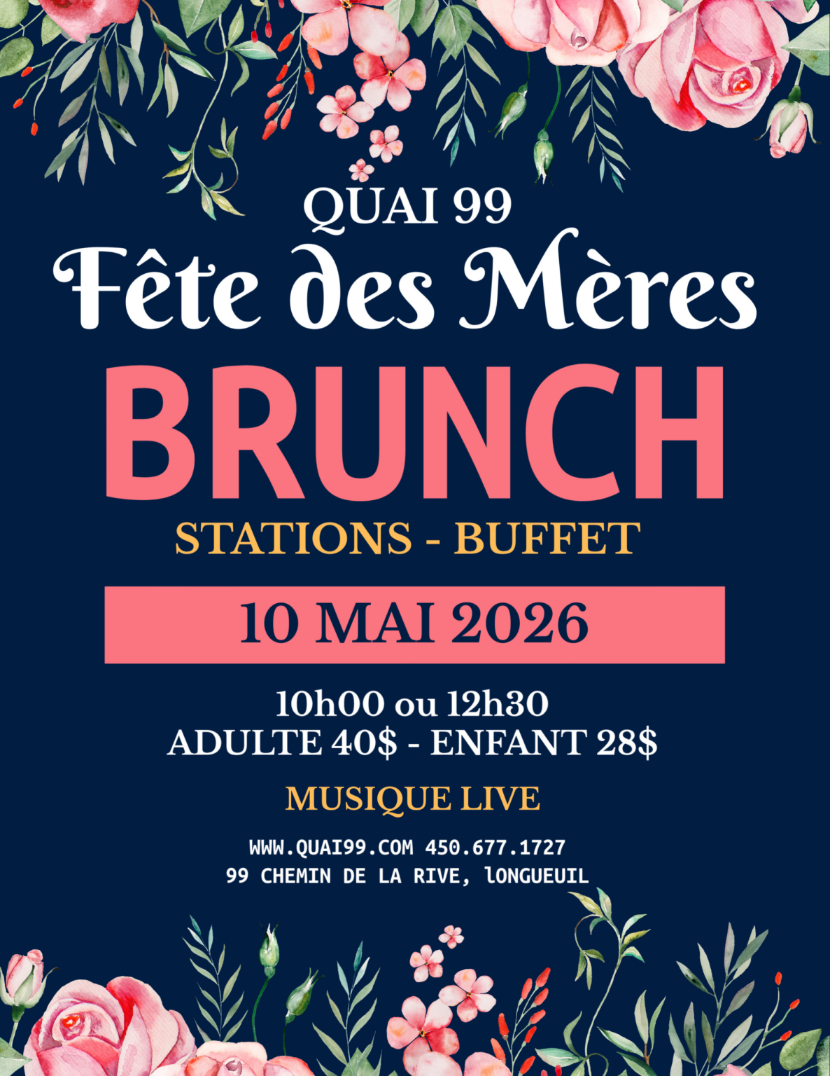 Le Quai 99 est magnifiquement situé au bord des rives du fleuve Saint-Laurent à Longueuil, au port de plaisance Réal-Bouvier.